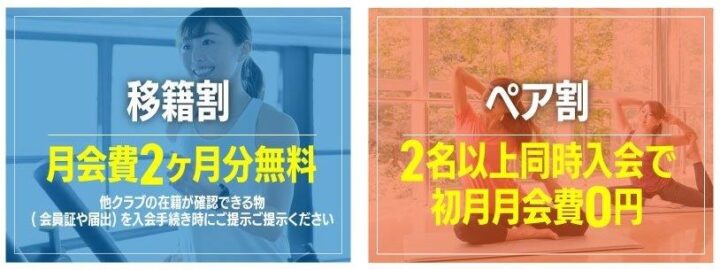 他クラブより移籍される方はキャンペーン特典+月会費2ヶ月分が無料となります。