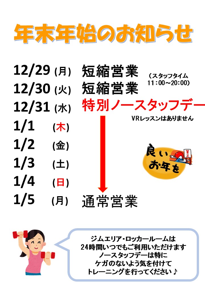 2025年12月29日(月)~2026年1月5日(月)年末年始のお知らせ