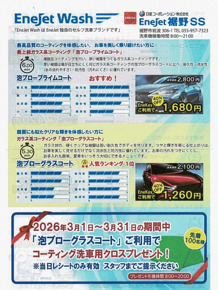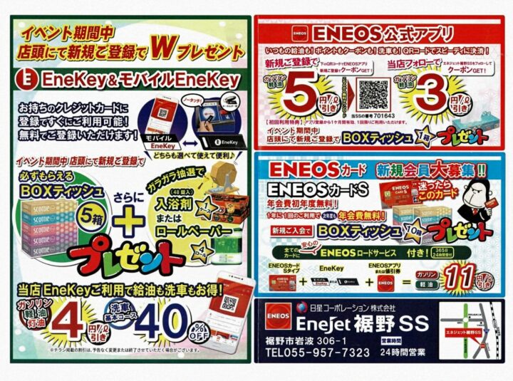 御殿場、裾野、長泉方面のお客様へENEOS Enejet裾野SSからの情報です!