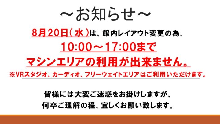 マシンエリアのご利用が出来ませんのでご注意ください.